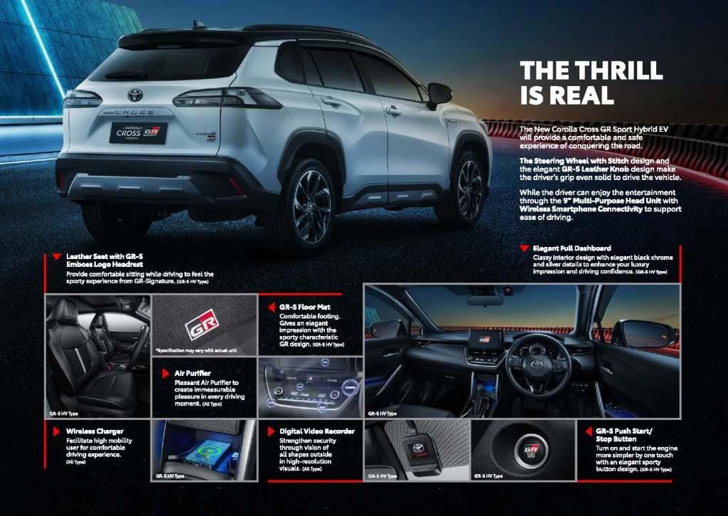 New Corolla Cross Hybrid EV GR hadir dengan tampilan yang lebih tangguh di sisi luar, maupun interiornya. Performa yang lebih sporty juga akan membuat pengalaman berkendara kamu semakin menyenangkan. Tidak perlu khawatir akan keamanan, hadir dengan fitur Toyota Safety Sense (TSS) & T-Intouch!