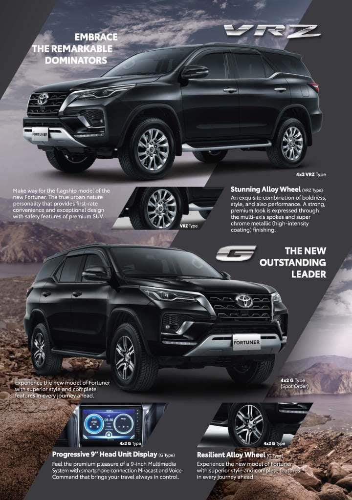 New Fortuner, sebagai mobil berjenis Sport Utility Vehicle (SUV) tampak inovatif dengan desain Tough and Bold sehingga lebih terkesan gagah dan berkelas. Fitur unggulan yang ramah pengguna juga menjadi salah satu alasan mengapa Anda harus memilih Fortuner untuk menemani perjalanan Anda sepanjang hari.