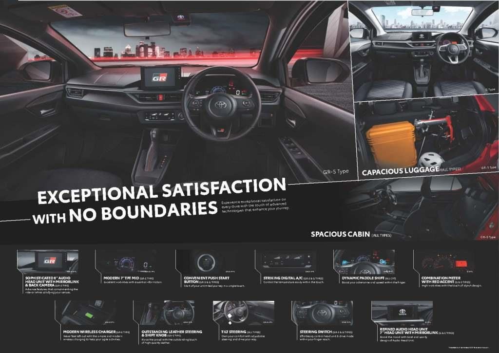 Desain eksterior dan interiornya semakin menghadirkan kesan sporty. Dilengkapi dengan pilihan mode berkendara sport dan eco, serta Exclusive GR Suspension yang dapat membawamu melaju tanpa batas!